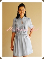 เดรสทรงหลวม คอจีน ตีเกล็ดด้านหน้า